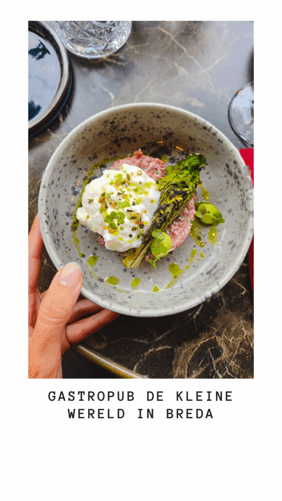 Op deze pagina vertel ik je alles over Gastropub de Kleine Wereld in Breda, echt een aanrader als je iets te vieren hebt of een romantische date night wilt. De Kleine Wereld ligt in het hart van Breda, pal naast de indrukwekkende Grote Kerk aan de Grote Markt. Het is één van de charmantste restaurants van de stad. Sinds chef‑eigenaar Gijs Cornelisse in mei 2024 aan het roer staat, heeft de gastropub een flinke transformatie ondergaan. Wat ooit een karakteristiek café was, is geworden tot een moderne, smaakvolle plek met een culinair randje, en dat zonder zijn warme, ongedwongen sfeer te verliezen.