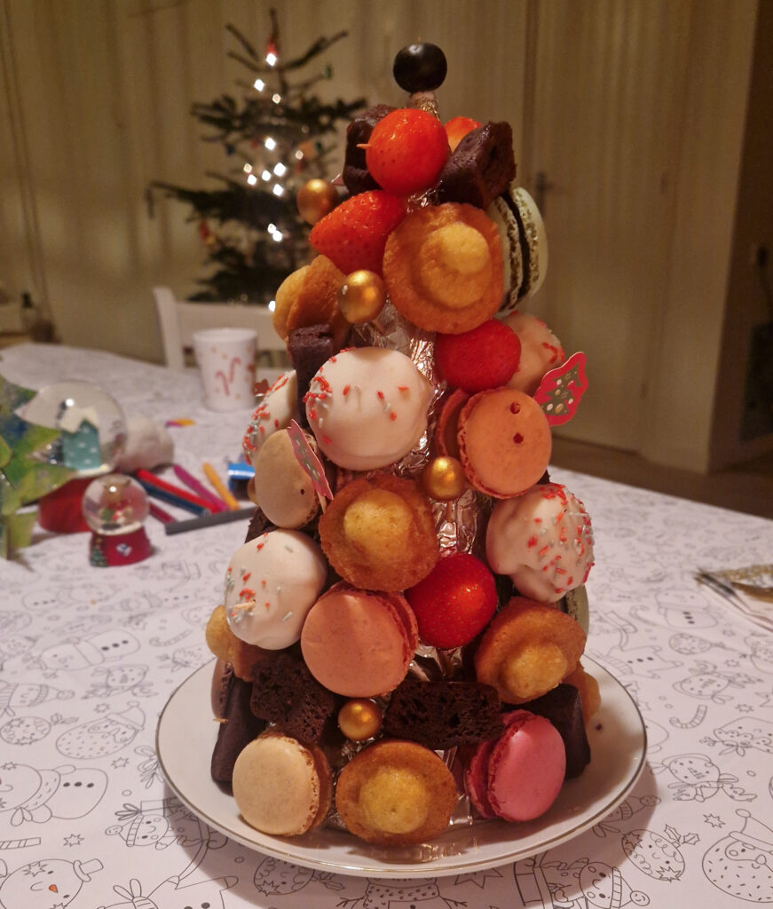 Ik zag dit idee voor een Zoete Kerstboom als kerstdessert voor het eerst op het TikTok account van Sterk in de Keuken. Maar in december 2024 leerde heel Nederland het kennen, toen het op de cover stond van de Allerhande Kersteditie. Albert Heijn verkocht toen ook roestvrijstalen vormen die je als basis kan gebruiken. Ik scoorde mijn basis bij knutselwinkel Pipoos, het is deze piepschuimen kegel. Voordeel daarvan is dat hij niet alleen goedkoper is, maar ook het hele jaar door verkrijgbaar. Wikkel deze kegel in met aluminiumfolie en steek met cocktailprikkers allerlei lekkers erin. Wij gingen onder andere voor Macarons, Soesjes, brownies en aardbeien. Mijn zoontje vond het heel leuk om te helpen met maken. En nog leuker om het op te eten natuurlijk.