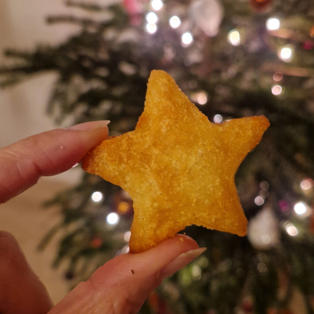 Ik was van plan om gebakken aardappeltjes te maken in de vorm van sterren met mijn koekjesuitstekers in de vorm van een ster. Maar toen ontdekte ik dat veel supermarkten ook zakken frietjes in de vorm van een ster verkopen tijdens de feestdagen. Ik heb deze Ster Frietjes, die in de Airfryer kunnen, uit het diepvriesschap van de Albert Heijn. Ze verkopen ze vaak vanaf twee weken voor Kerstmis.