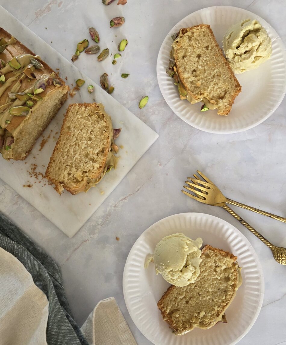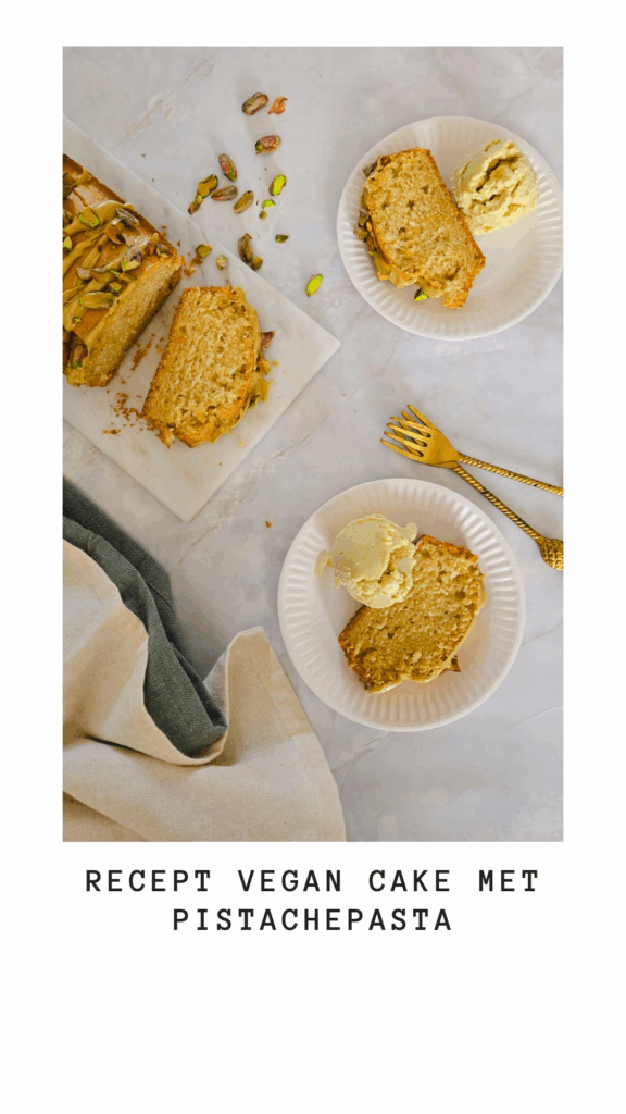 Op deze pagina deel ik het recept voor vegan cake met pistachepasta en pistache ijs. Niet alleen de cake, maar ook de pistache pasta en het pistache ijs zijn helemaal vegan en dus ook lactosevrij. De zachte textuur van de cake past perfect bij de rijke smaak van pistache. Lees snel verder voor het recept van deze vegan cake met pistachepasta.