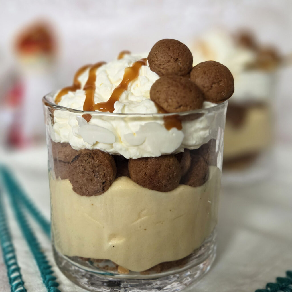 Op deze pagina deel ik een lekker en makkelijk Sinterklaas recept; namelijk voor deze Pakjesavond Trifle. Dit dessert is perfect voor 5 december, maar eerlijk gezegd kan ik het de hele herfst en winter wel eten! Deze trifle is opgebouwd uit lagen speculaas, witte-chocolademousse, kruidnoten, slagroom en karamelsaus. Lees snel verder voor dit Sinterklaas recept van Pakjesavond Trifle.